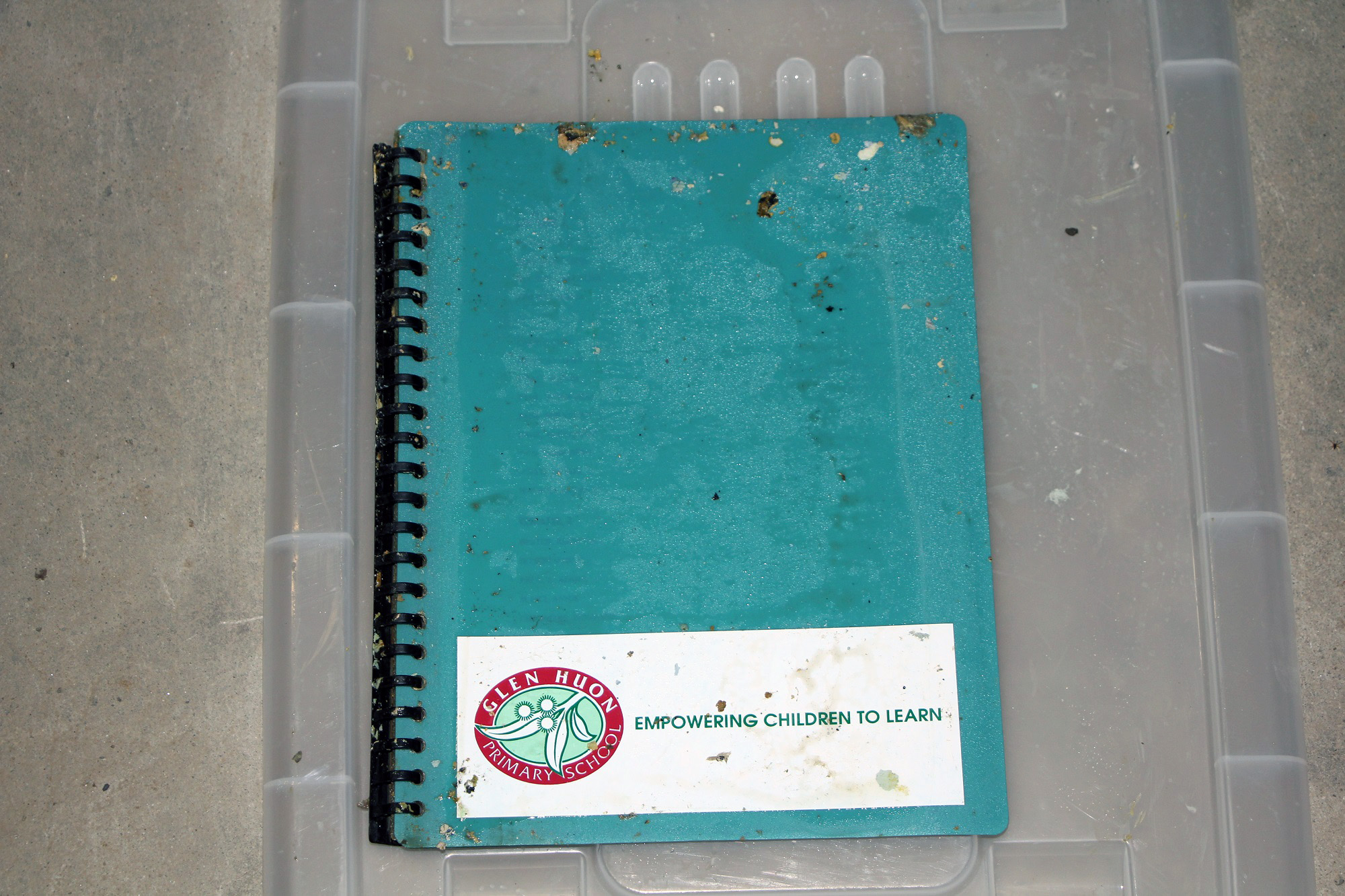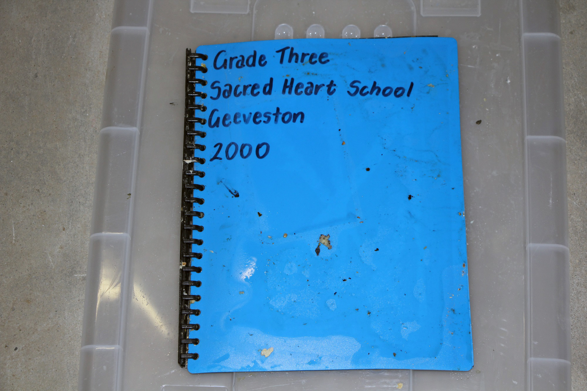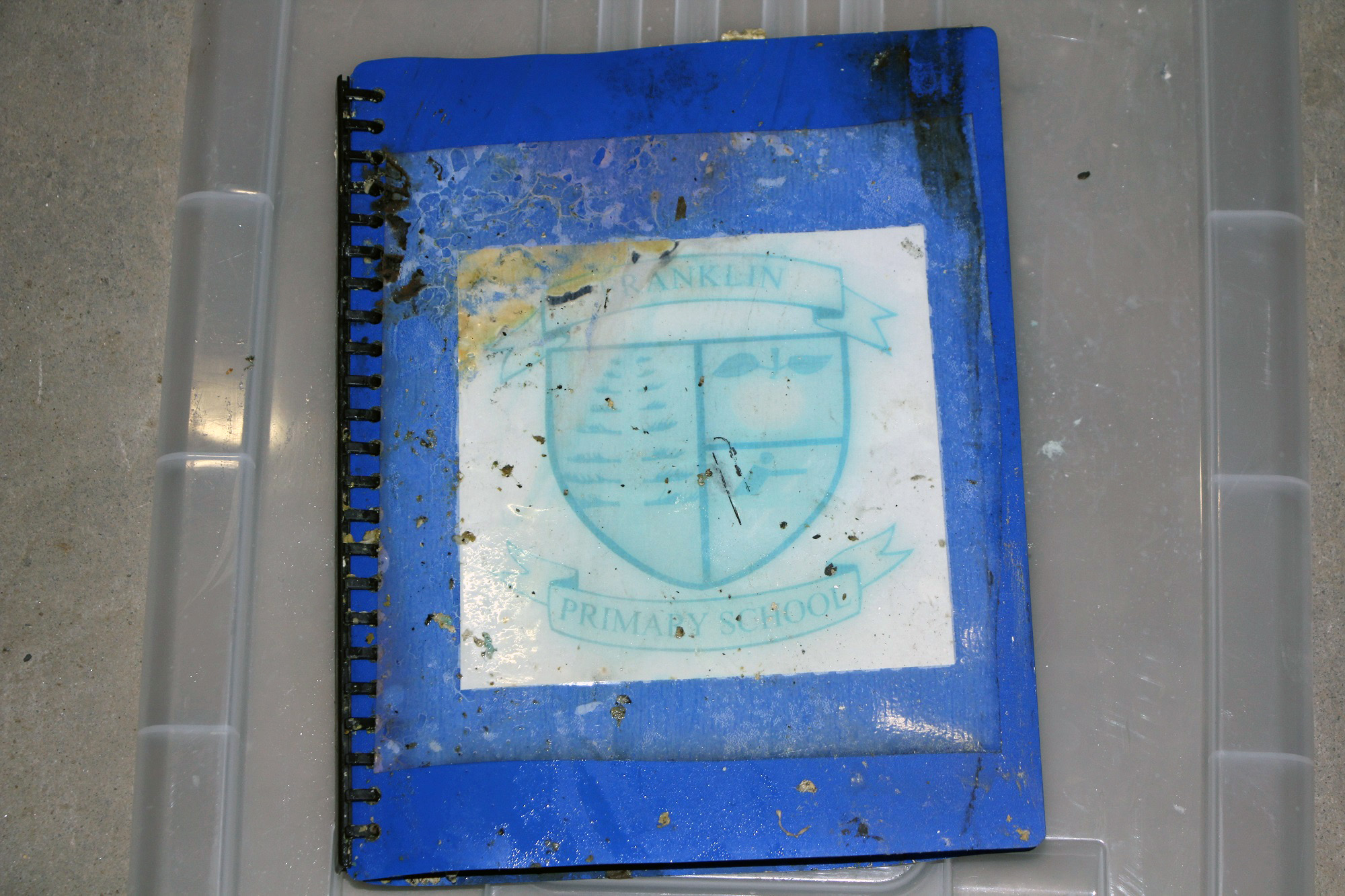 Despite heavy damage, a fabric map of the Sacred Heart School Geeveston school grounds has been identified, as well as school jumpers from Huonville High School and Franklin Primary School. Year books, photos, videos and stories were also included from various schools.