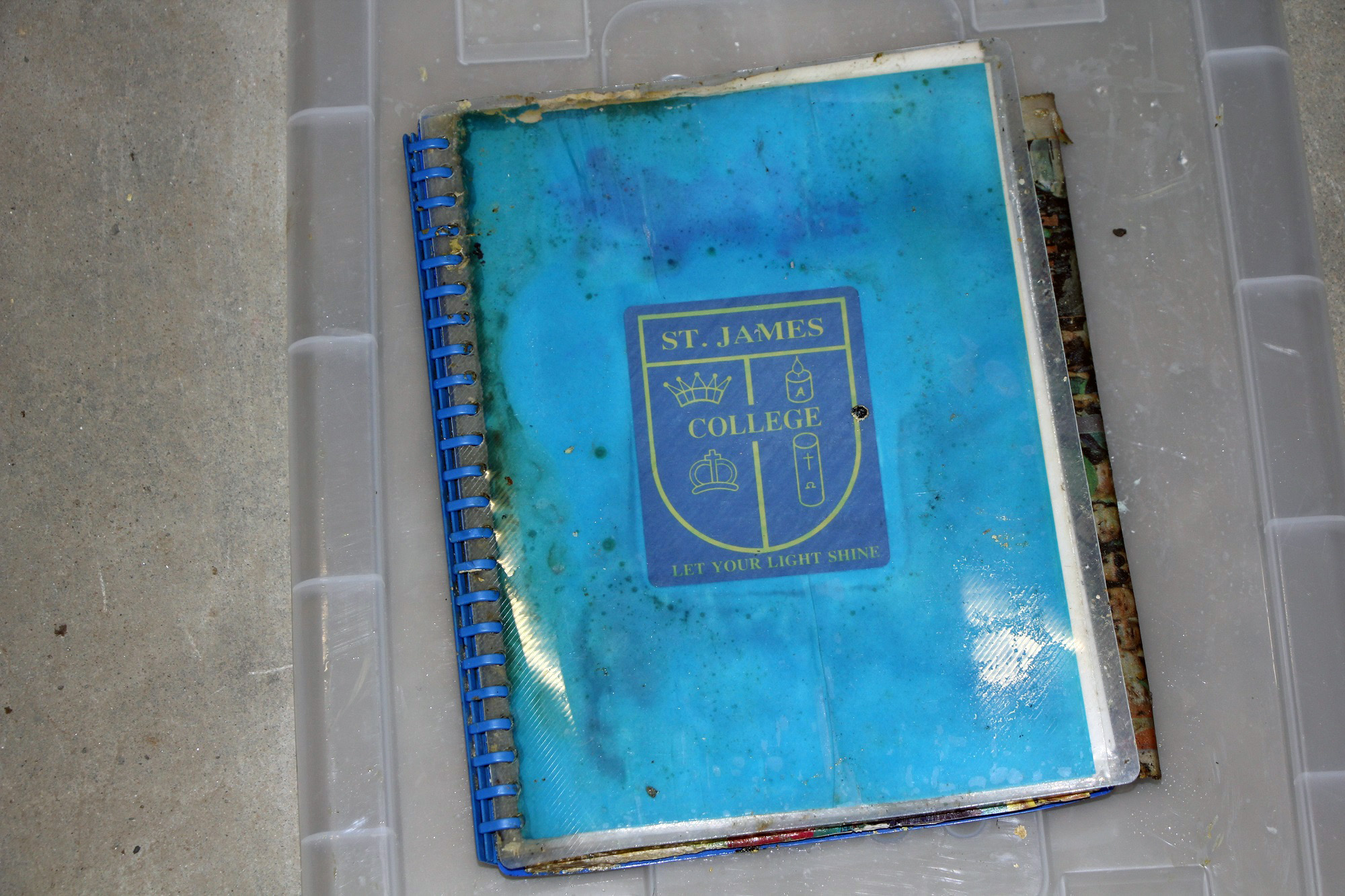 Some stories which were filed in plastic folders are still legible, however all the contents is still deemed a health hazard due to the water damage, so cannot be handled.